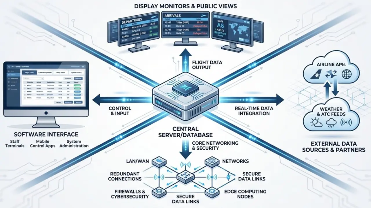 Behind the bright screens and constant updates of an Airport FIDS lies a network of connected parts, each playing an important role in keeping the system running smoothly. These parts work together to deliver accurate, real-time flight data to the right place at the right moment, helping the airport run more efficiently for both staff and passengers.