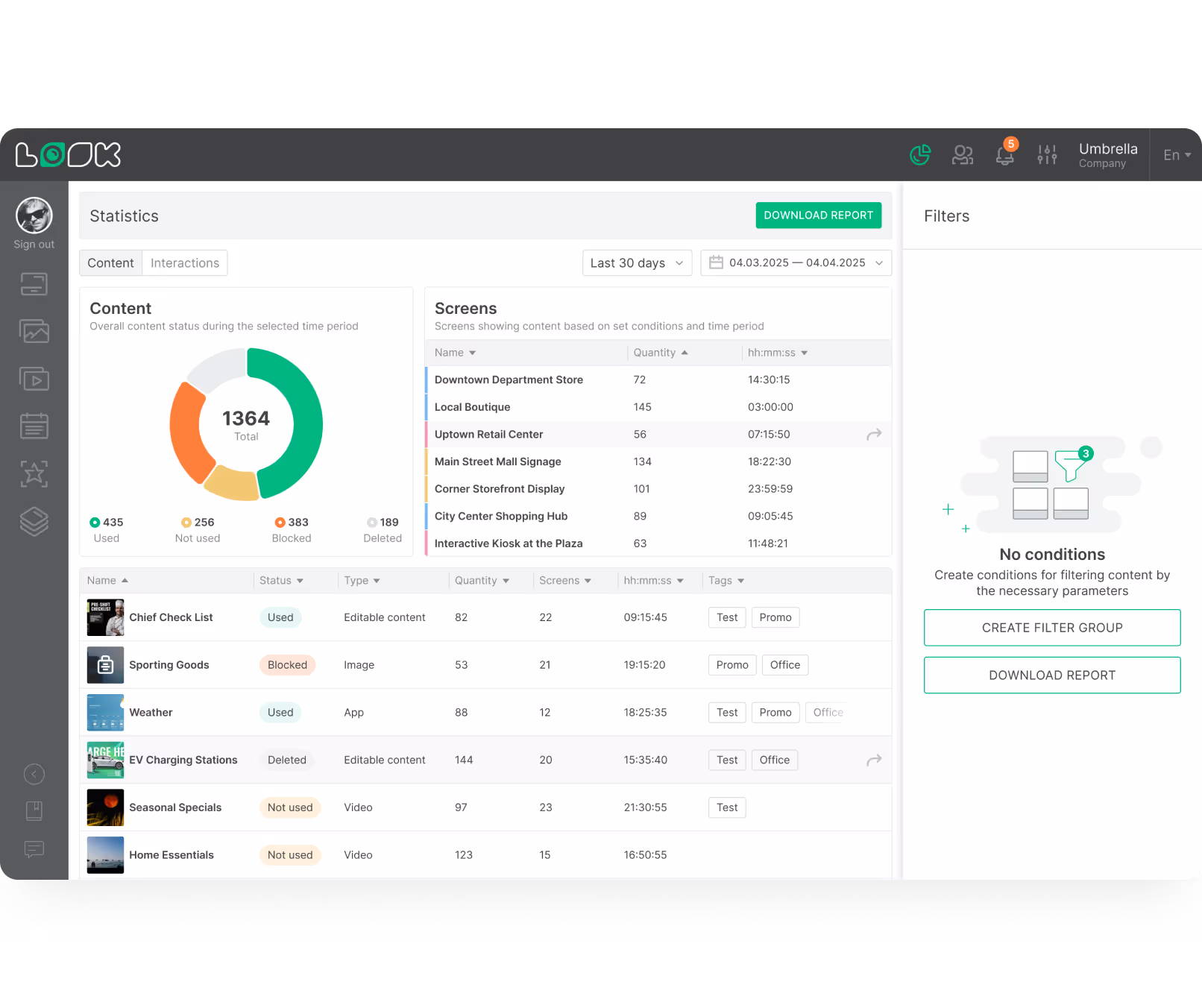 I contenuti continuano a essere visualizzati anche quando Internet si spegne. I file vengono salvati localmente, quindi gli schermi continuano a funzionare senza interruzioni.